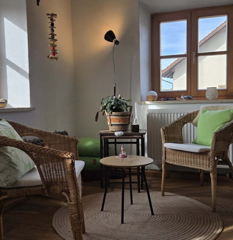 My premises are located in tranquil Jenhausen, a small village between Seeshaupt and Weilheim surrounded by idyllic meadows and fields—pure nature and the perfect place to reflect! The practice is best reached by car—there is ample parking available directly under the maypole. The room itself is located on the first floor and is therefore not wheelchair accessible. I work in a joint practice with Katharina Veitinger and Anna Juniper Müller.